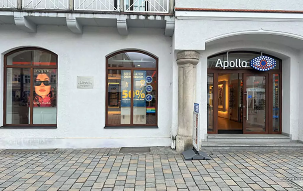 Besuchen Sie den Apollo Optiker in Pfaffenhofen a.d. Ilm (85276) für individuelle Beratung und eine umfangreiche Auswahl an Produkten. Mit hochmodernen Messverfahren und Geräten sorgen wir für eine präzise Bestimmung Ihres Sehvermögens. Dank unserer bequemen Online-Terminbuchung profitieren Sie zudem von kurzen Wartezeiten beim Optiker in Pfaffenhofen a.d. Ilm. Neben unseren Apollo Service-Garantien, die unter anderem kleinere Brillenreparaturen einschließen, bieten wir Ihnen auch eine breite Auswahl an Brillen, Sonnenbrillen und Kontaktlinsen. Bei Apollo in Pfaffenhofen a.d. Ilm finden Sie alles von trendigen Kinderbrillen über Gleitsichtbrillen bis hin zu Ray-Ban Sonnenbrillen. Vervollständigen Sie Ihren Stil mit dem passenden Zubehör, darunter Etuis und Brillenbänder. Apollo-Optik - Pfaffenhofen a.d. Ilm - Hauptplatz hält zudem eine große Auswahl an Kontaktlinsen und Kontaktlinsenflüssigkeiten bereit, ergänzt durch fachkundige Beratung direkt vor Ort.